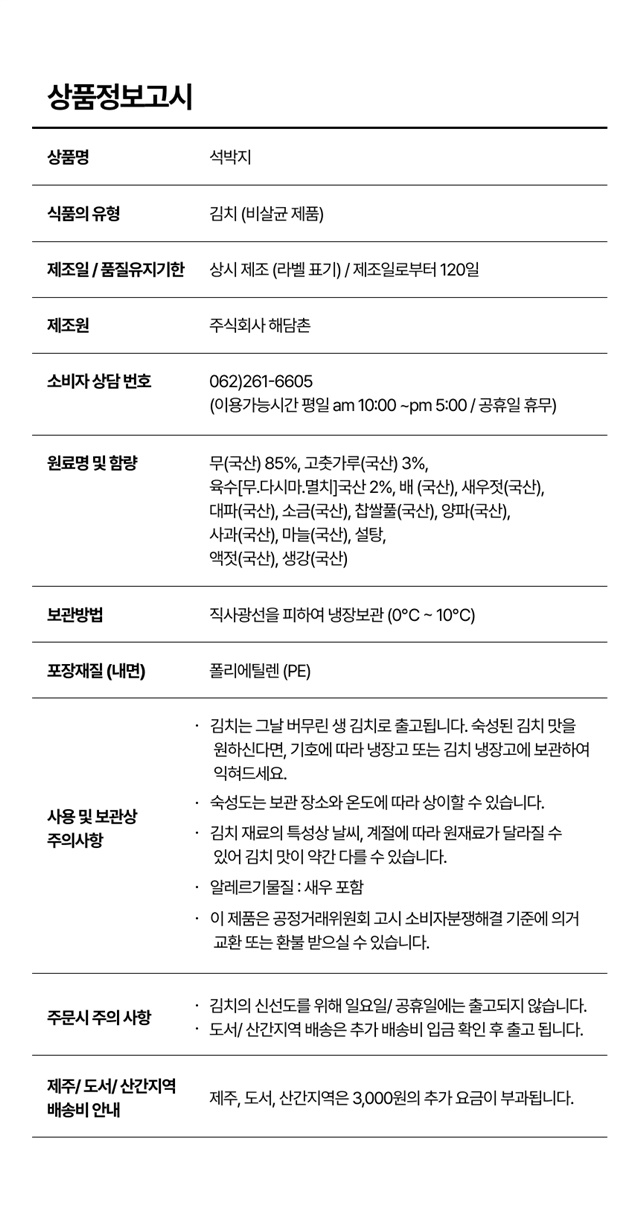 · 배송비: 3,000원 (40,000원 이상 무료배송) (장바구니 묶음배송 가능)