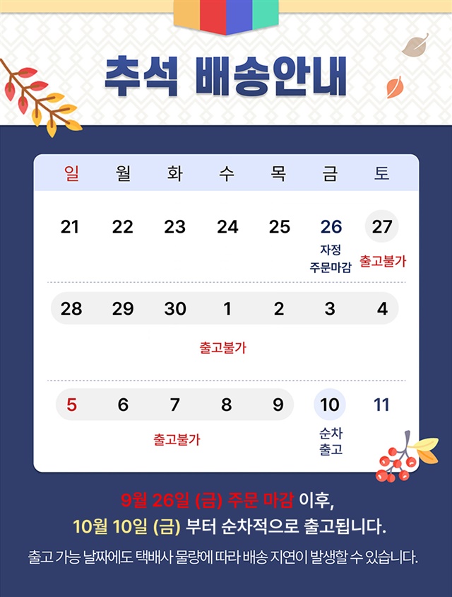 · 상 품은 조기 배송될 수 있으며 배송일 지정은 불가합니다.